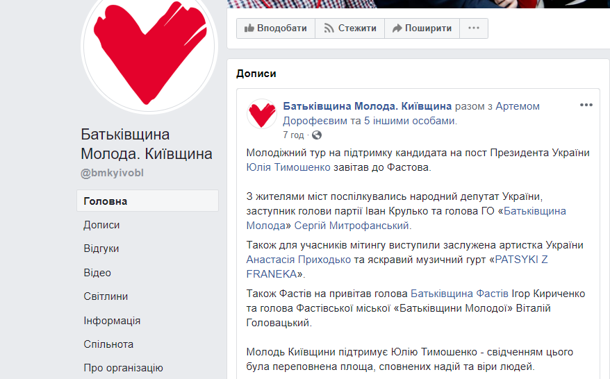 Джерело: ФБ-сторінка «Батьківщина Молода. Київщина»