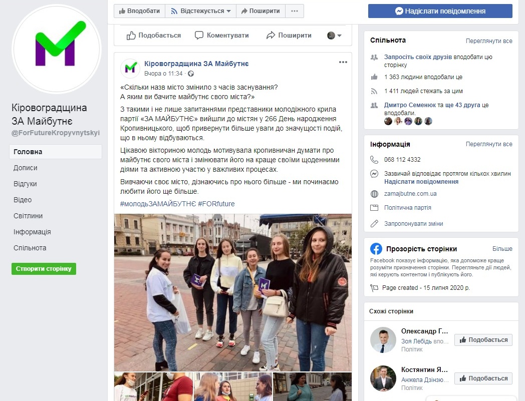 «Цікавою вікториною молодь мотивувала кропивничан думати про майбутнє свого міста і змінювати його на краще своїми щоденними діями та активною участю у важливих процесах. Вивчаючи своє місто, дізнаючись про нього більше - ми починаємо любити його ще більше», – йдеться на сторінці політичної партії.