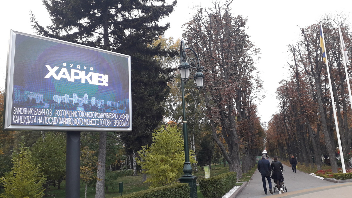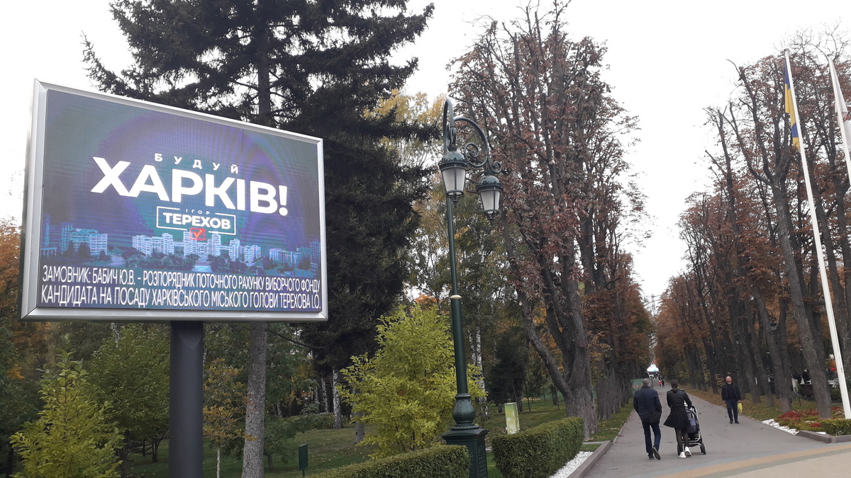 Так, ОПОРА зафіксувала сітілайти та білборди кандидата на посаду Харківського міського голови Ігоря Терехова, висунутого організацією партії “Блок Кернеса — Успішний Харків”. Рекламні носії, що містять ознаки прихованої агітації, розміщені на вул. Сумській, зокрема, на вході до Парку імені Горького.