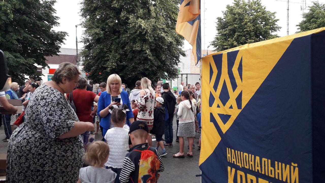 Партія «Національний корпус» провела 8 червня у Мерефі свято для місцевих дітей — її представники показали вправи з самооборони, бійці спецпідрозділу МВС «Схід» провели урок патріотичного виховання. Діти отримували безкоштовні солодку вату і морозиво, а також могли постріляти в тирі і взяти участь у конкурсі малюнків.