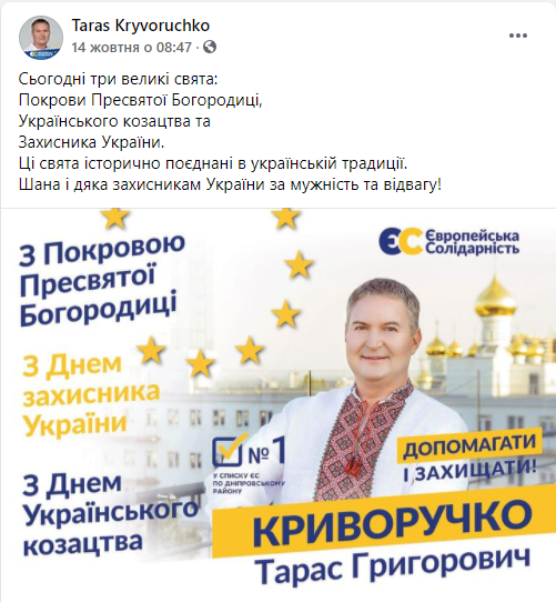 Напередодні виборів кожне свято для кандидатів – привід ще раз нагадати про себе виборцям. Хтось використовує нагоду безпосередньо для агітації, а хтось – для власного піару. Не став винятком і День захисника України, про що, зокрема, свідчать сторінки в мережі Facebook кандидатів у депутати Київської міської ради.