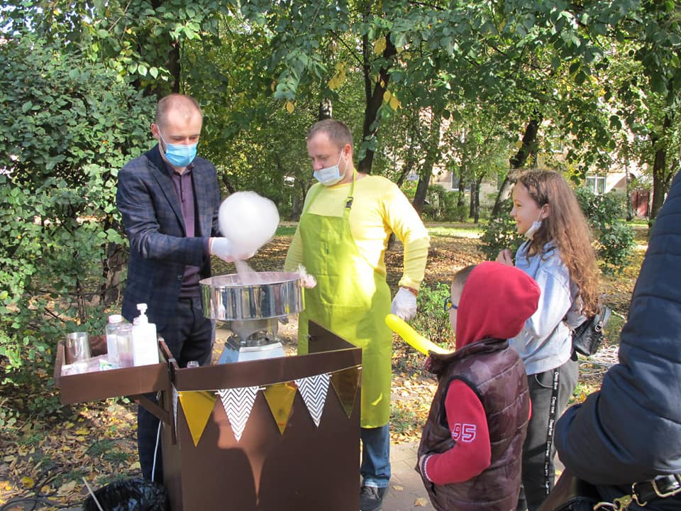 На відео та фото, які оприлюднив Олександр Степенко, видно, що кандидат власноруч робить солодку вату для дітей. Однак у сквері не лише святкували, але й агітували, про що свідчать листівки кандидата та екран із його зображенням і номером у виборчому бюлетені, які також добре видно на світлинах.