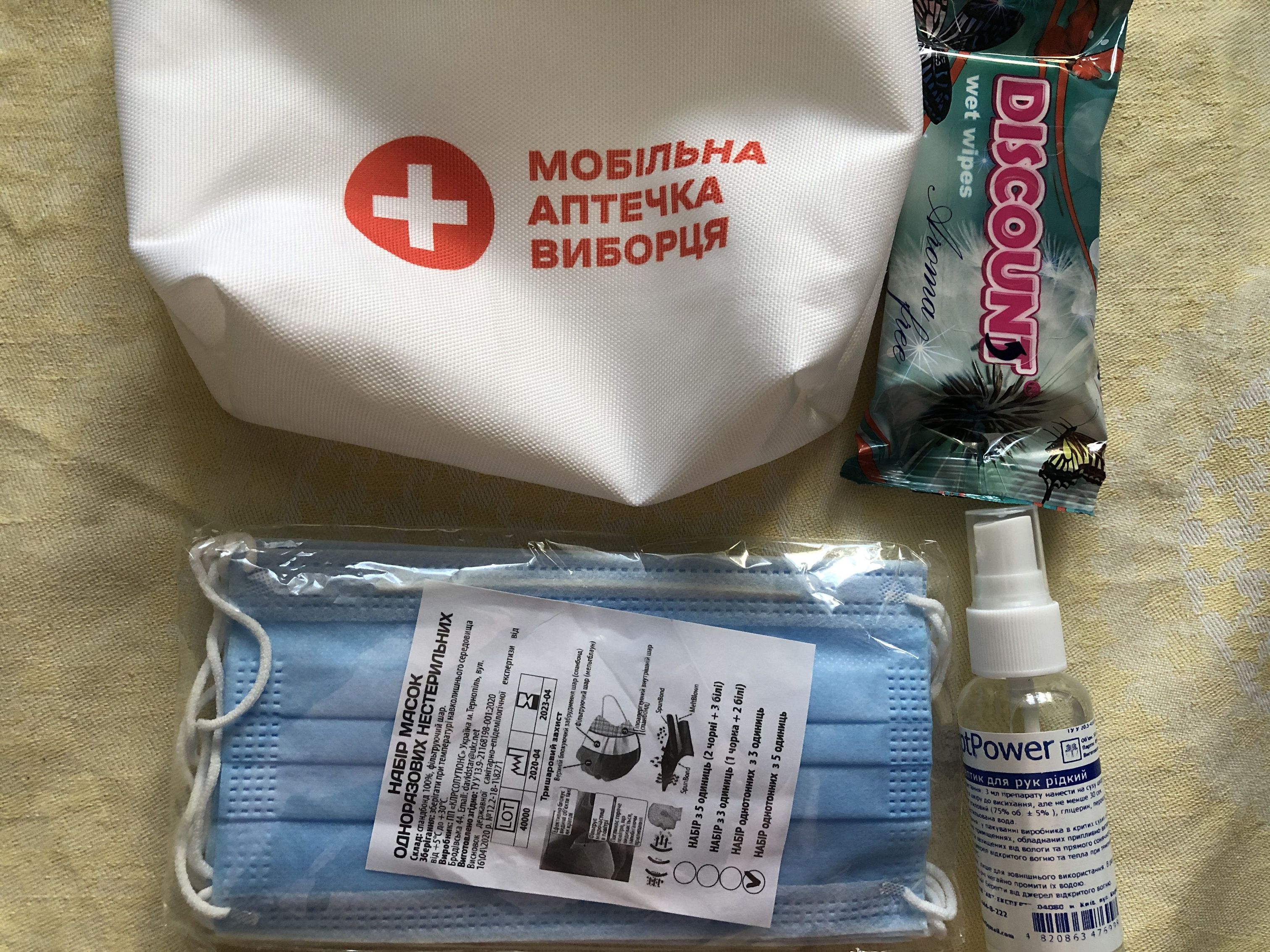 В той же час «мобільна аптечка виборця», яку отримала мешканка вулиці Чернівецької, містила набір масок одноразових нестерильних, антисептик для рук та пачку вологих серветок.
