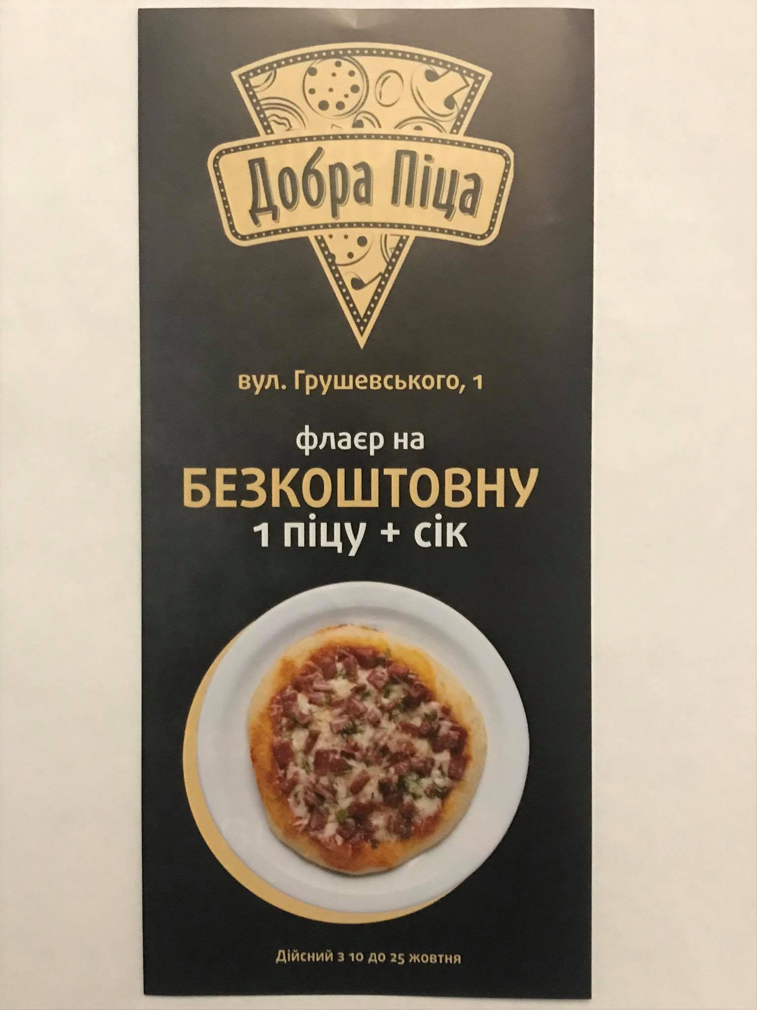 На питання ОПОРИ, у які терміни можна отримати піцу (на флаєрі вказано до 25 жовтня), кандидат відповів, що не знає, оскільки це маркетологи займалися розробкою реклами. Далі у розмові Дмитро Синюта зазначив, що агітаційні матеріали він особисто з помічниками розносить по квартирах. І додав, що йому не відомо чи хтось роздавав його агітаційні матеріали на заході, бо сам кандидат був заклопотаним.