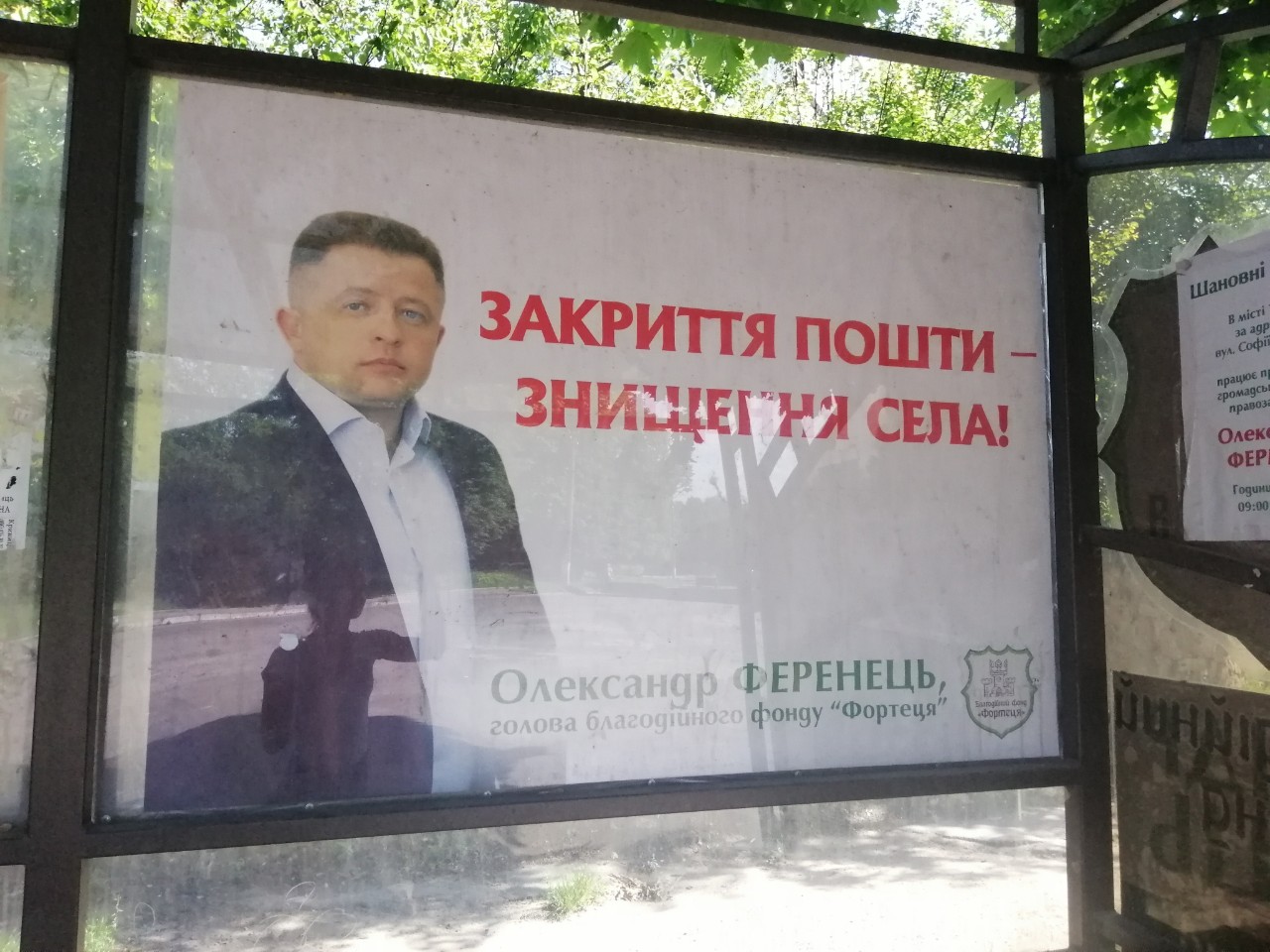 Крім того, 9 липня, у Таращі, на транспортній зупинці, спостерігачі ОПОРИ виявили банер на користь кандидата у народні депутати по 92 виборчому округу, Олександра Ференця. Він був розміщений з ймовірним порушенням ЗУ "Про вибори народних депутатів України". А саме, на згаданій продукції були відсутні вихідні дані, за що передбачена адміністративна відповідальність (ст. 212-13 Кодексу України про адміністративні правопорушення). Разом з тим, відсутність таких даних може свідчити і про те, що агітаційна продукція надрукована не за кошти виборчого фонду кандидата, як того вимагає Закон, а саме ч. 6 ст. 68. Банер на користь цього ж кандидата, спостерігачі виявили і у Ставищі. Про обидва випадки повідомили поліцію та написали відповідні заяви.