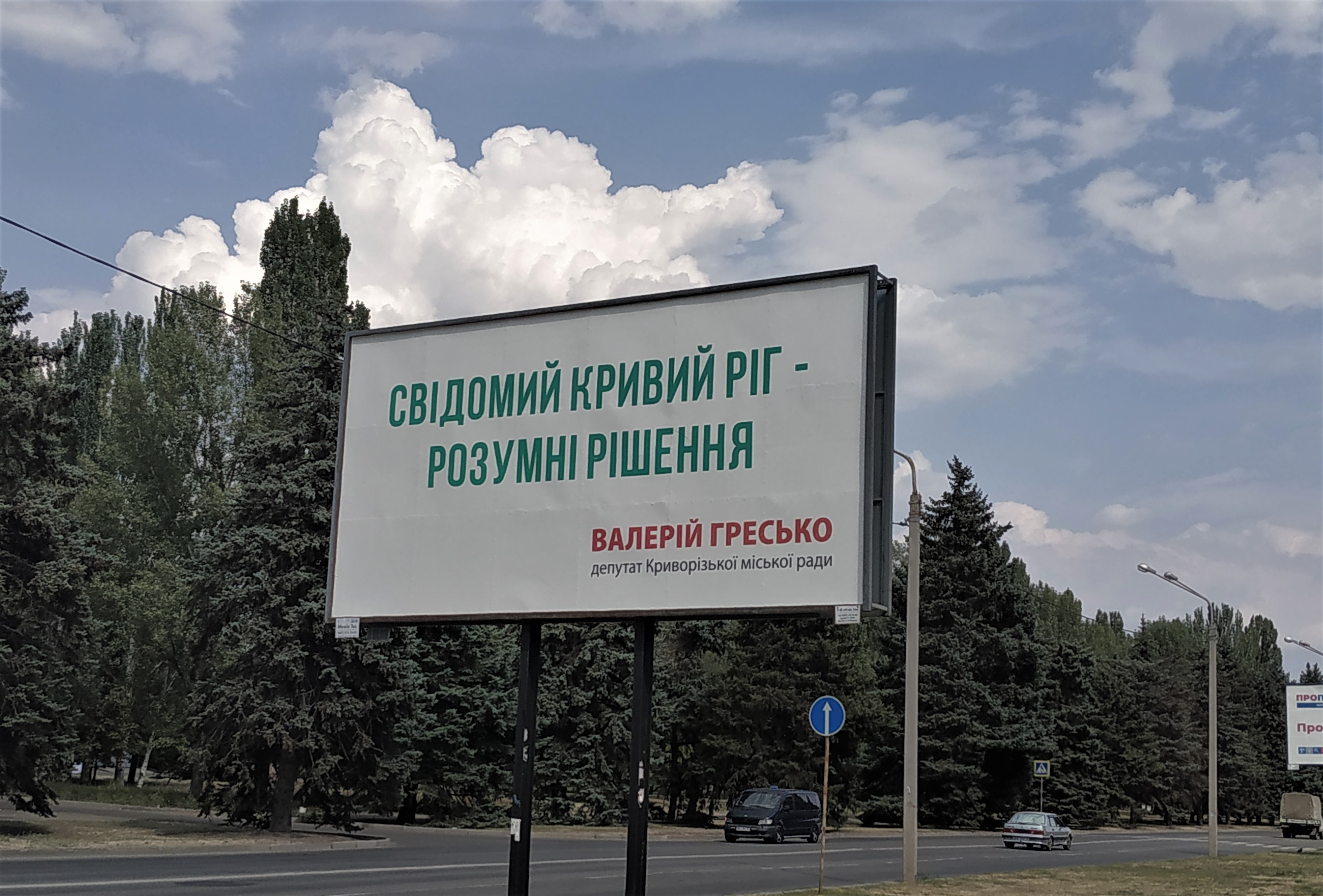Також у Кривому Розі зафіксовані білборди Валерія Греська, депутата міської ради від партії «Опозиційний блок».