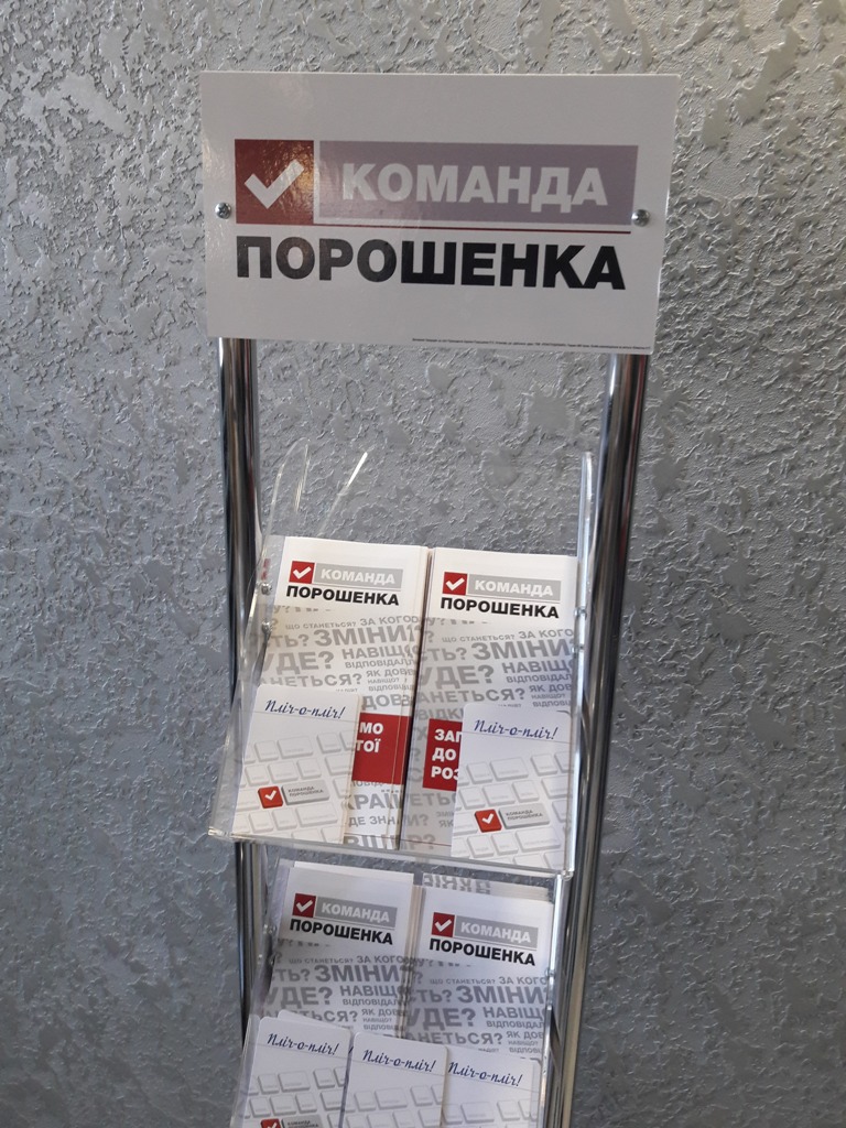«Зафіксовано, що у «відкритих офісах» пошируюють як агітаційну продукцію, так і немарковану друковану продукцію про кандидата у Президенти Петра Порошенка. І виникає плутанина: офіс розповсюджує матеріали про роботу Порошенка як Президента чи закликає підтримати кандидата... Якщо в офісі є агітація за Порошенка і спонукання виборців голосувати за такого кандидата, то вся наявна друкована продукція є агітаційною і має бути оплачена за рахунок виборчого фонду кандидата, містити необхідні вихідні дані (ч.2, 3 ст. 37, ч.5 ст. 58, ч.3 ст. 59 Закону України «Про вибори Президента України»)», – зазначила координаторка спостереження Громадянської мережі ОПОРА за виборами  в Кіровоградській області.