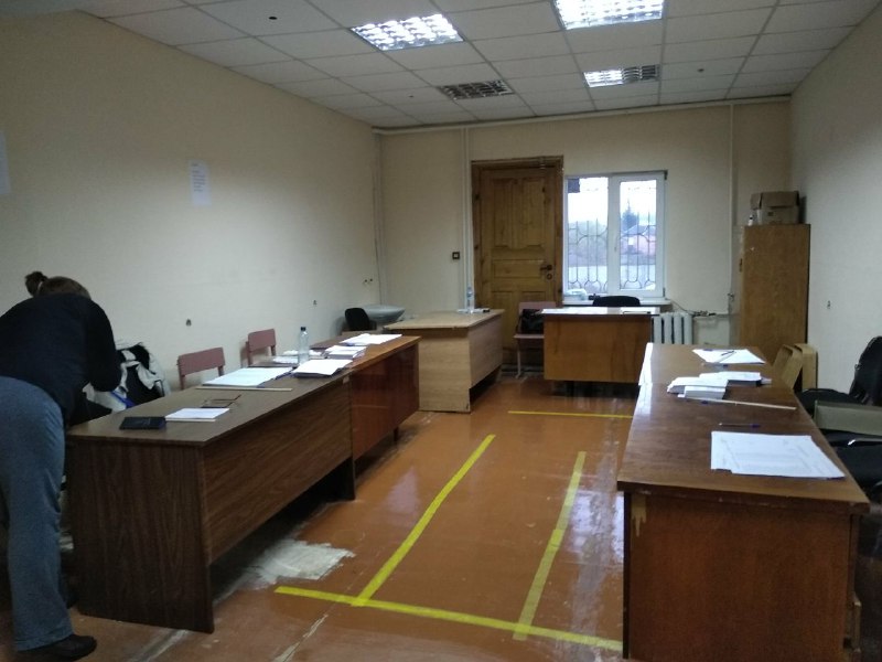 На виборчій дільниці № 590951у Сумах всі члени ДВК та спостерігачі періодично залишають приміщення для голосування для проведення дезінфекції.