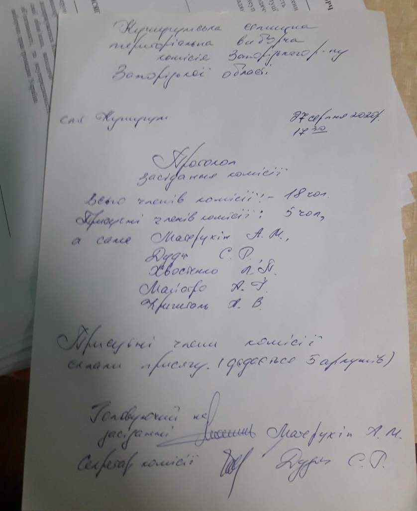 10 вересня до відділу ведення ДРВ апарату Запорізької районної державної адміністрації за адресою вул. Істомина, б. 8 легкова автівка й транспорт для громадського перевезення підвезли близько 15 осіб, які завітали сюди з метою зміни виборчої адреси. Мікроавтобус мав табличку із вказаним маршрутом: «Залізничний вокзал, Онкологія, Балабино, Кушугум».