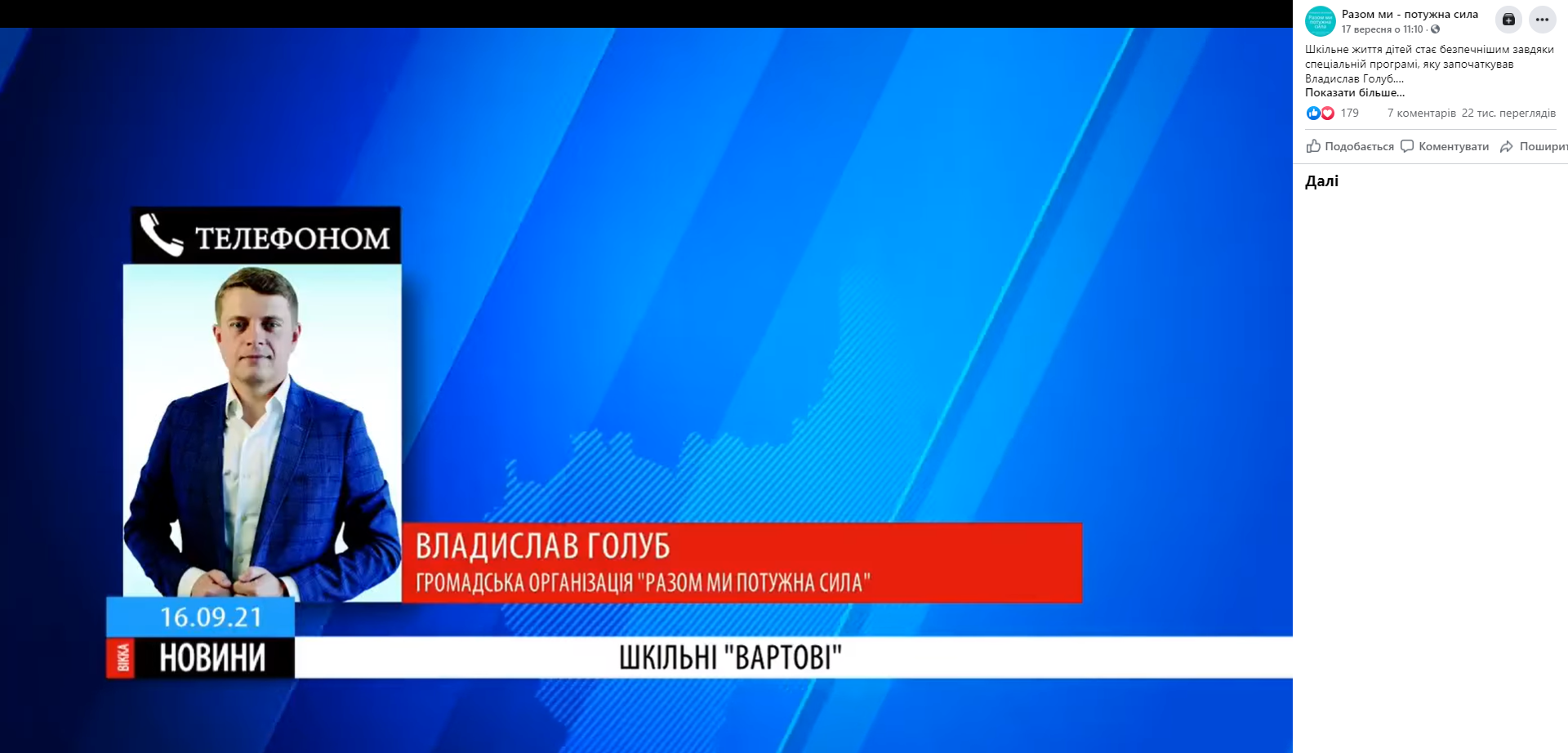 А на сторінці громадської організації поширили сюжет місцевого телеканалу «Вікка» від 16 вересня