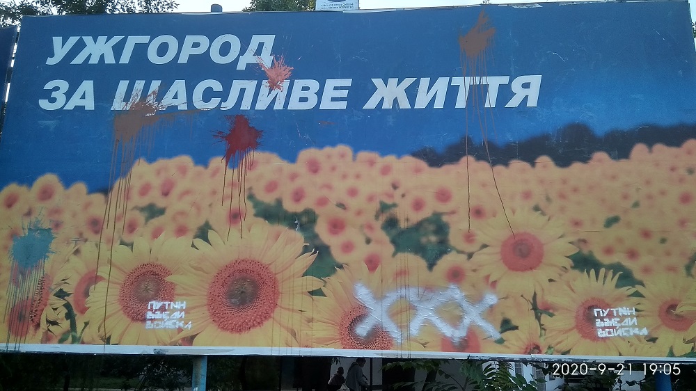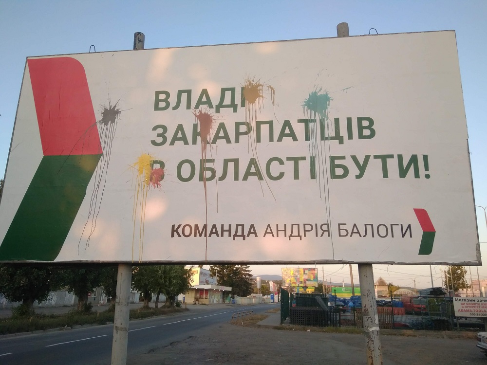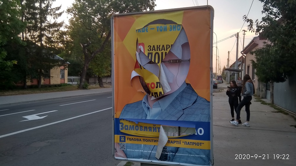 Також в Ужгороді станом на 21 вересня спостерігачі ОПОРИ зафіксували поодинокі зіпсовані фарбою білборди із символікою різних політсил – «За майбутнє», «Опозиційна платформа – За життя», «Патріот», «Слуга народу», «Сила і честь», «Команда Андрія Балоги», «Пропозиція».