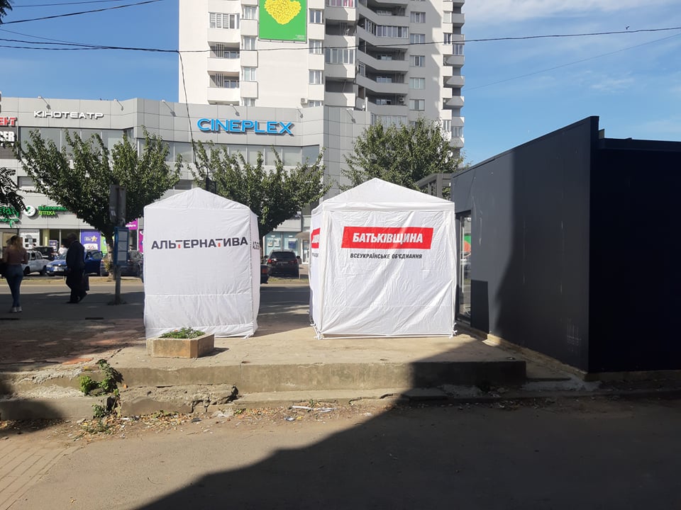 20 вересня спостерігачка ОПОРИ виявила на вулиці Легоцького в Ужгороді агітаційні намети двох політичних партій – «Альтернатива» та ВО «Батьківщина». Із наметів перехожим роздавали друковану агітаційну продукцію. Станом на 20 вересня обидві політсили не мали офіційно зареєстрованих кандидатів, однак конференції стосовно висунення кандидатів провели.