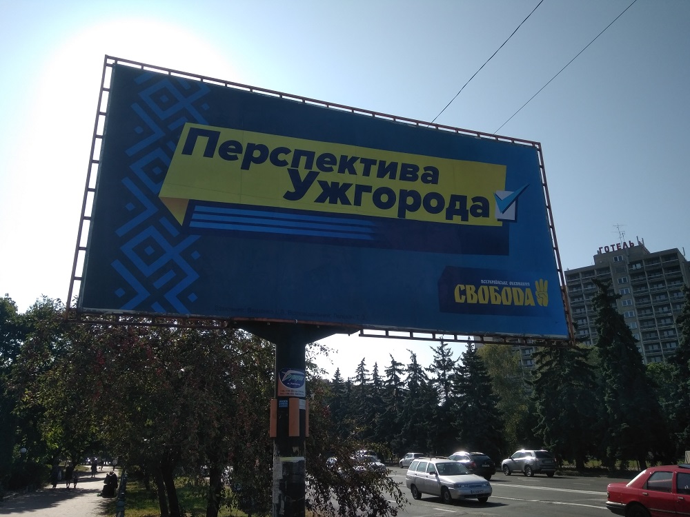 На вулицях Ужгорода спостерігач ОПОРИ виявив 22 вересня поодинокі білборди політичної партії ВО «Свобода» із неповними вихідними даними. Зокрема, на білборді вказують замовника та відповідального за друку, однак не вказують установу, яка надрукувала плакати та тираж. Крім того, станом на 22 вересня у партії «Свобода» в Ужгороді не було зареєстрованих кандидатів, а конференцію стосовно висунення кандидатів обласний осередок партії провів 19 вересня, відтак тут вбачаються ознаки дочасної агітації. Також на вулицях Закарпаття спостерігачі ОПОРИ виявили білборди із символікою політичних партій «Рідне Закарпаття», «За майбутнє», «Європейська солідарність», «КМКС «Партія угорців України», «Пропозиція», «УДАР», ВО «Батьківщина». Оскільки всі ці політичні партії вже провели з’їзди стосовно висунення кандидатів на місцевих виборах, однак їхні кандидати ще не були зареєстровані у відповідних ТВК, тут вбачаються ознаки дочасної агітації, про що ОПОРА повідомила поліцію.