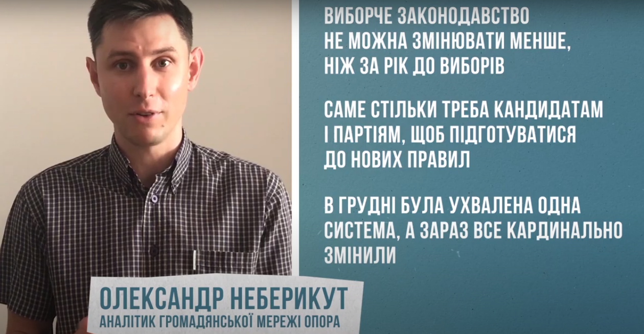 «Виборче законодавство не може змінюватися менше ніж за рік до проведення виборів. Це усталена міжнародна практика і вона виникла не на пустому місці, – розповідає Олександр Неберикут. – Основна суть полягає у тому, що менше ніж за рік кандидати і партії просто не встигнуть якісно підготуватися до нових правил гри. По суті в Україні зараз це і відбувається. У грудні, коли голосувалася перша редакція Виборчого кодексу, всі кандидати і партії розуміли, що у нас буде одна виборча система в обласних радах і у містах з населенням понад 90 тисяч, та інша багатомандатна мажоритарна в усіх інших радах. Зараз все кардинально змінилося, лишається пропорційна виборча система з відкритими списками в усіх абсолютно місцевих радах, де є більше 10 тисяч виборців і лише в тих, де менше 10 тисяч є багатомандатна мажоритарна. Відповідно кандидати і партії, які готувалися до того, що буде інша конфігурація округів, інша виборча система, вони вкладали ресурс, розгортали мережі до інших виборів, зараз можуть це все перекреслити і по суті вступати у нову гонку. Ясно, що вони не в конкурентних умовах з тими, хто впливав на зміну правил гри. У першу чергу, мова йде про парламентські партії, так як вони принаймні могли допускати, що може бути зміна правил гри. Тому це нечесно по відношенню до конкурентів з боку тих партій, які приймали рішення про зміни. І це робить вибори неконкурентними. Так само це недолік для виборців, бо вони не зможуть якісно вникнути в суть виборчої системи, хоча час ще лишається. І це основна проблема, пов’язана зі зміною виборчих правил», – резюмує Неберикут.