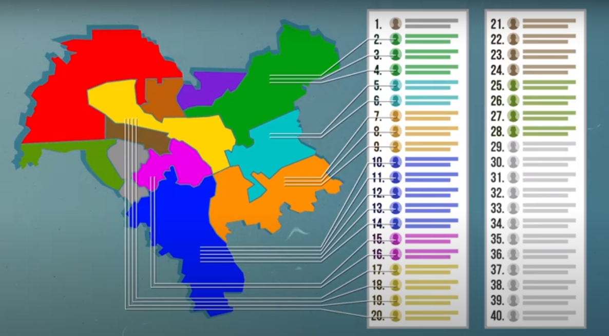 То, як після виборів партія дізнається, наскільки великою буде фракція, умовно, в Київраді? Це кількість депутатів, які пройшли в кожному з округів, плюс перший номер у списку та кілька депутатів за єдиним списком (вони проходять за рахунок залишкових голосів територіальних списків).