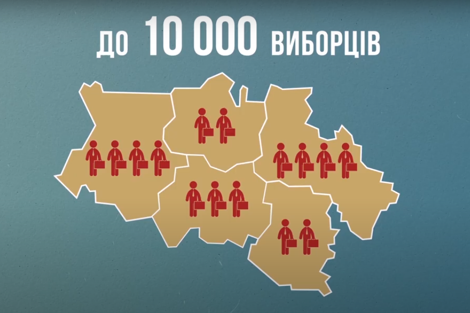 Почнемо з дрібніших. У тих новоутворених громад, які матимуть до 10 тисяч виборців, можуть балотуватися всі: і представники партій, і самовисуванці. Територія громади поділяється на округи, в кожному з яких буде обиратися від двох до чотирьох депутатів. Це означає, що якщо визначено, що в конкретному окрузі обирається, наприклад, три мандати, то до місцевої ради проходить три депутати, які отримують найбільшу кількість голосів виборців цього округу. Така система називається багатомандатною мажоритарною. Кількість округів відповідно має бути втричі меншою за кількість депутатів.