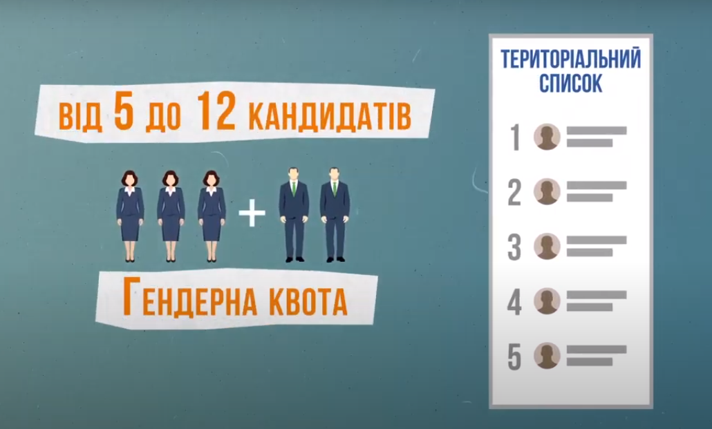 Веселіше з пропорційною системою з виборчими списками. Раніше вона мала працювати для міст, де мешкає понад 90 тисяч виборців, та обласних рад. Але Верховна Рада знизила планку для пропорційки до 10 тисяч виборців, значно розширивши кількість населених пунктів, куди обиратимуть депутатів за пропорційною системою. Тут балотуватися зможуть тільки представники партій. Це не обов’язково має бути людина за партійним квитком. Безпартійні теж можуть, але їх має затвердити на конференції чи виборах партія. Отже, як виглядатиме виборчий список до міської, районної чи обласної ради? Партія має затвердити єдиний виборчий список. Кількість кандидатів не має перевищувати кількість депутатів відповідної ради. Кандидати, які потрапили до єдиного списку, окрім першого номера, включаються до територіальних списків – по одному списку на кожен округ. Кандидат з єдиного списку може бути включений лише до одного регіонального списку. У територіальному списку може бути від 5 до 12 прізвищ. Зараз гендерна квота стала обов’язковою – в кожній п’ятці має бути не менше двох представників протилежної статі.
