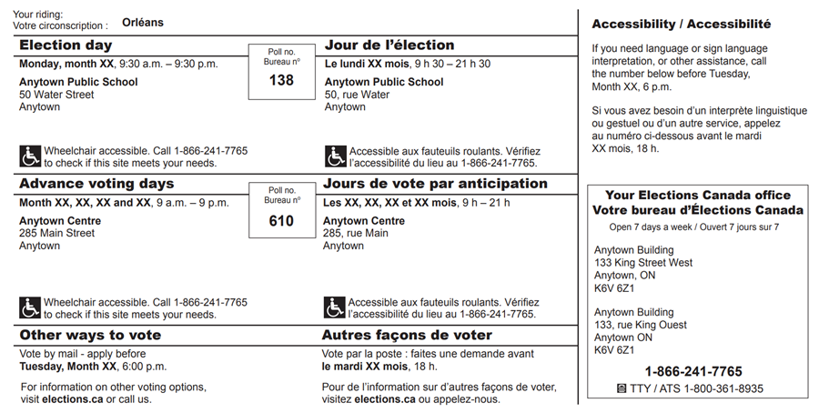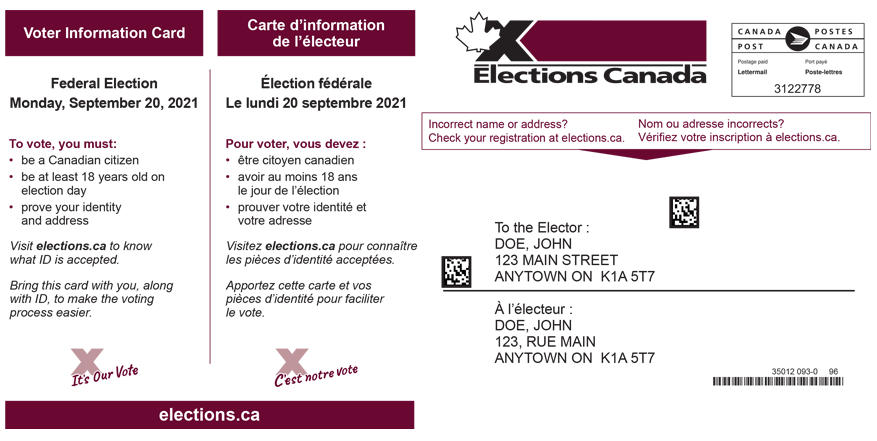Інформаційна картка виборця з обох боків. Джерело фото: www.elections.ca