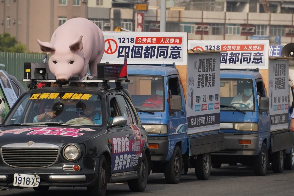 - Обмеження імпорту свинини з рактопаміном. Критики цієї харчової добавки для тварин стверджують, що вона заборонена у 160 країнах світу через проблеми з безпекою і загалом може зашкодити місцевим виробникам. Натомість їхні опоненти вважають, що заборона на імпорт свинини з рактопаміном може зашкодити міжнародним відносинам і торговельним угодам Тайваню, зокрема з США, де цю добавку офіційно дозволено використовувати у тваринництві з 1999 року.