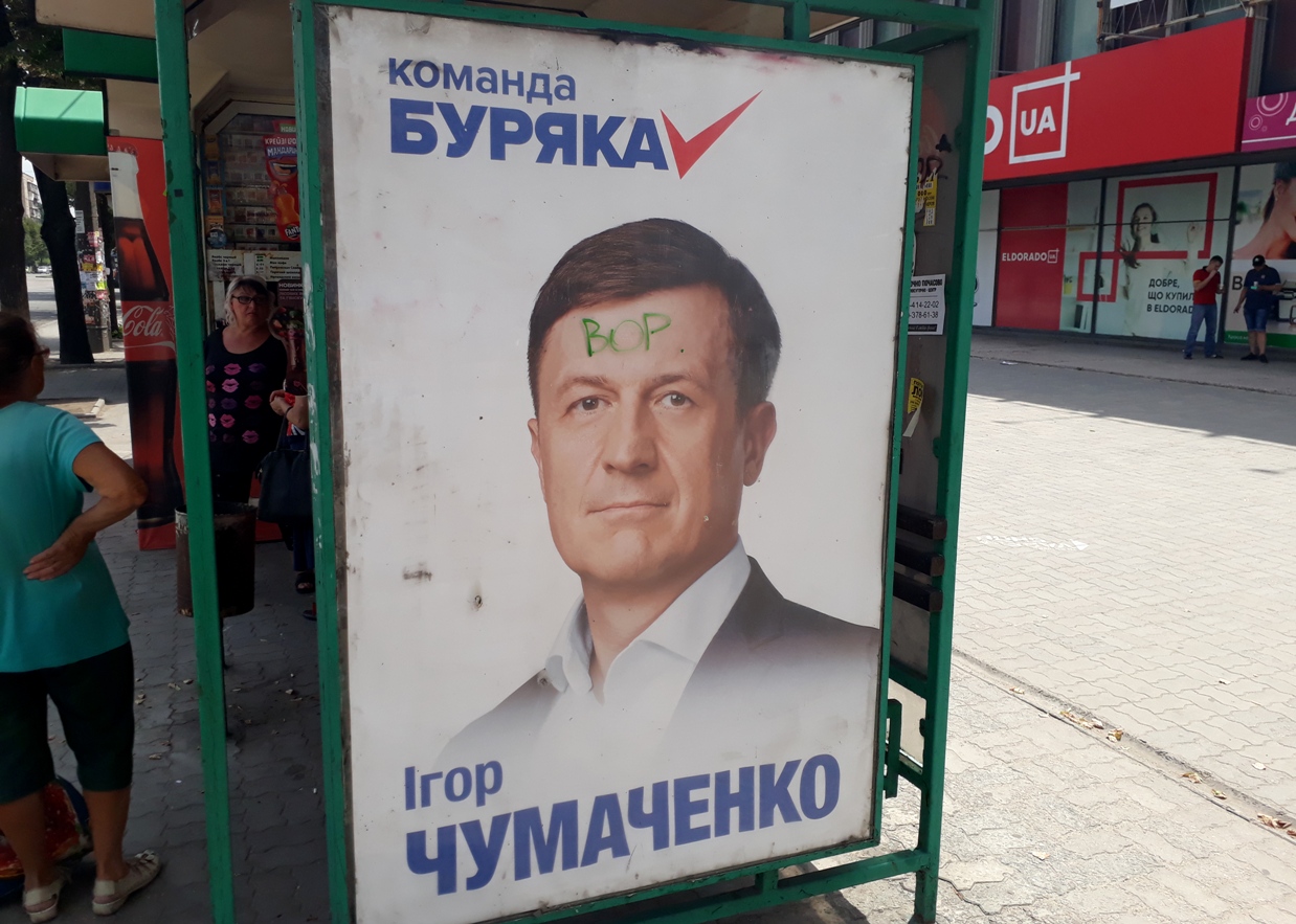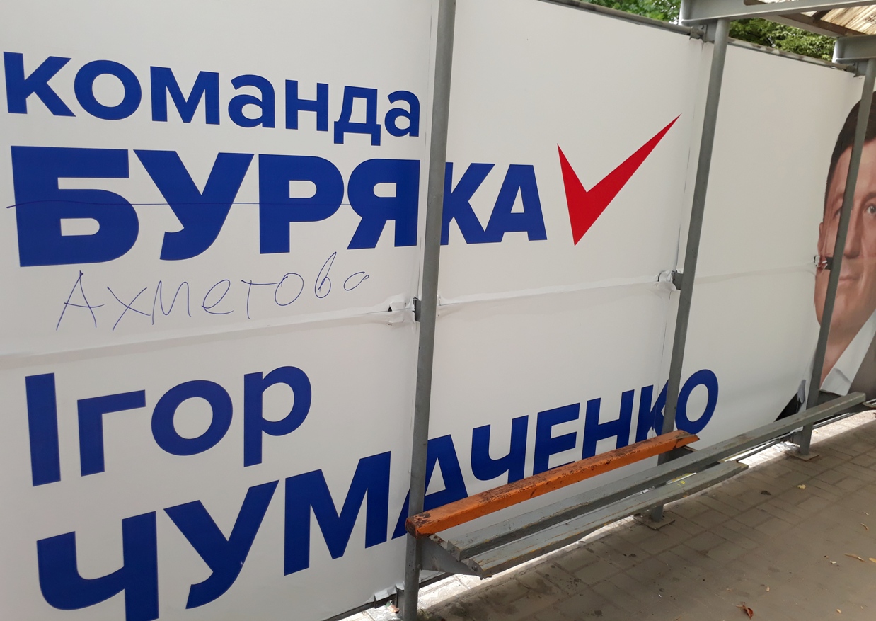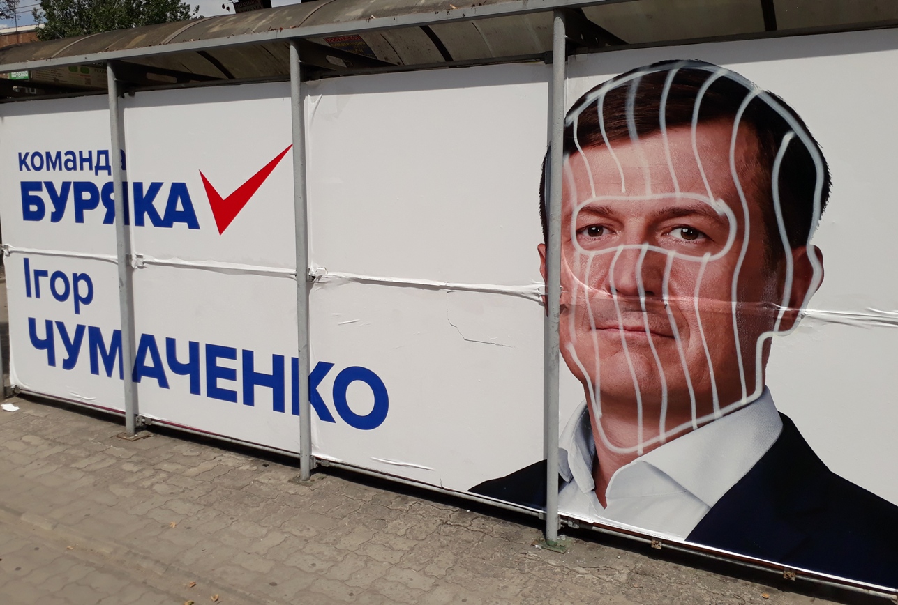 Помічені зіпсовані зразки зовнішньої агітації за Андрія Парубія та представників партії «Опозиційний блок»: Ростислава Шурму й «команду Буряка» (спільна самоназва трьох кандидатів-мажоритарників Віктора Буська, Анатолія Пустоварова, Ігоря Чумаченка та Володимира Буряка, який йде під номером 8 у виборчих списках партії «Опозиційний блок»).