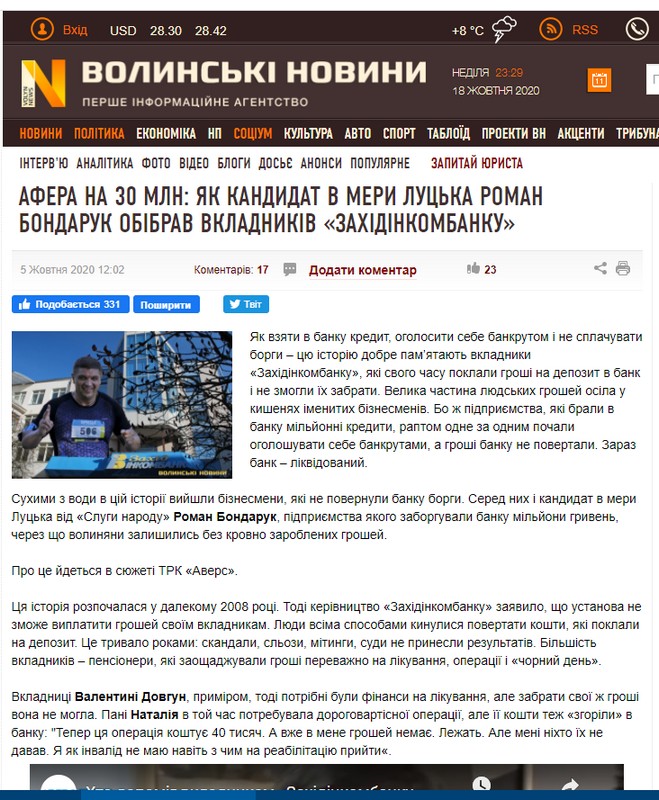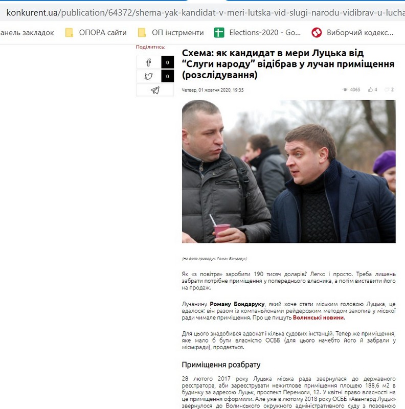 Протягом 1-19 жовтня у волинських інтернет-виданнях та на одному каналі вийшло щонайменше 35 публікацій про кандидатів у депутати чи на посади міських голів, у котрих їх діяльність подавали у негативному світлі. Найбільше таких публікацій стосувалися кандидата на посаду Луцького міського голови Романа Бондарука («Слуга народу»).