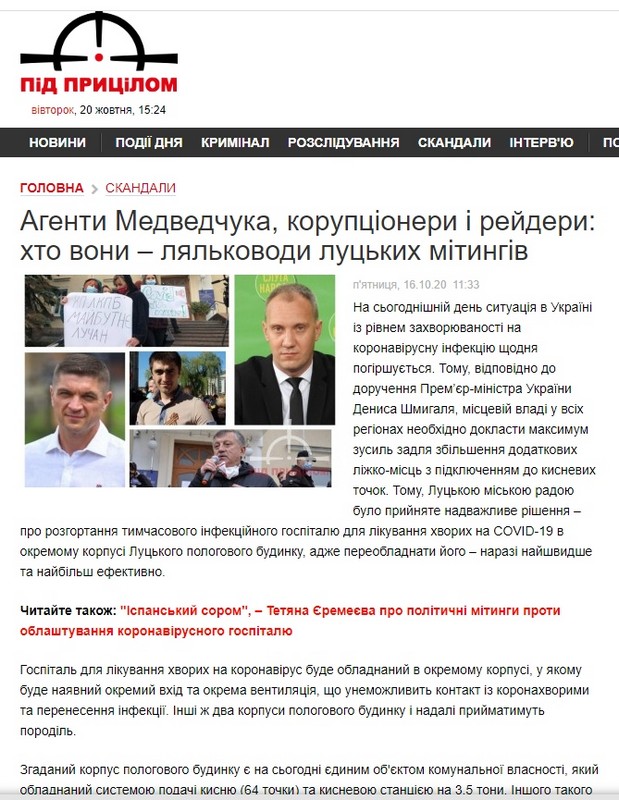 Також видання «Під прицілом» опублікувало матеріал, у якому у негативному світлі показувало обох вищезгаданих кандидатів.