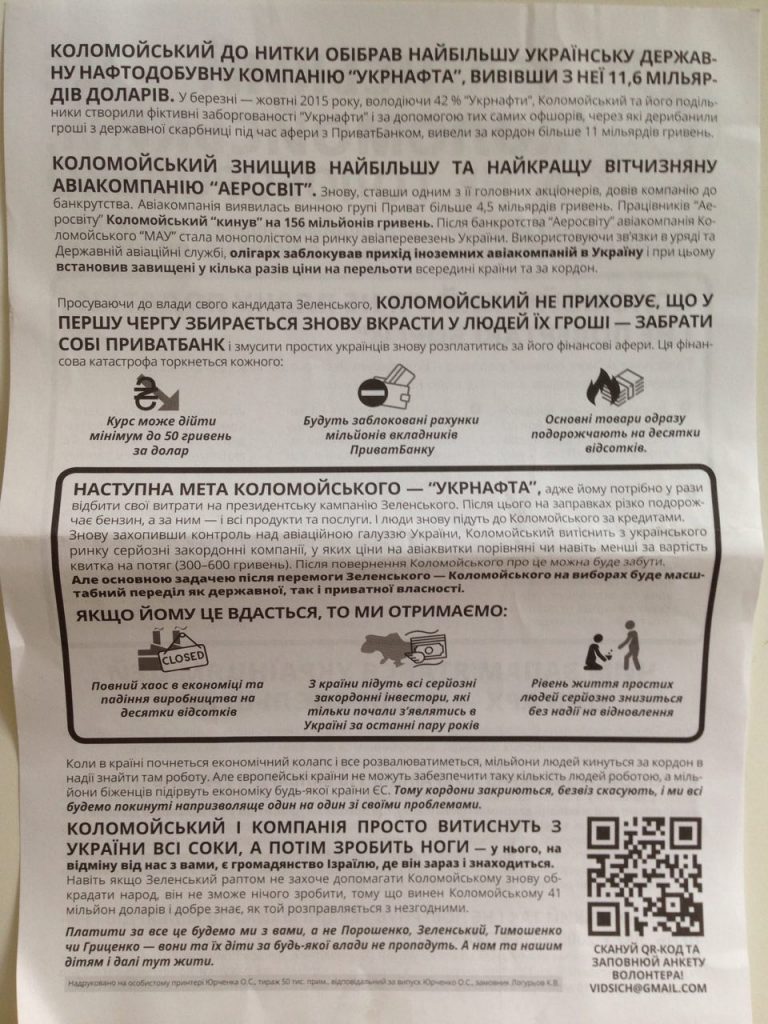 Спостерігачі ОПОРИ на виборах 2019 року зафіксували масовість порушення кандидатами на пост Президента України правил ведення передвиборної агітації. Цей висновок підтверджується і даними Національної поліції України. Адже більше 70% складених протоколів про адміністративні правопорушення стосувались виготовлення або розміщення агітаційних матеріалів без вихідних даних.