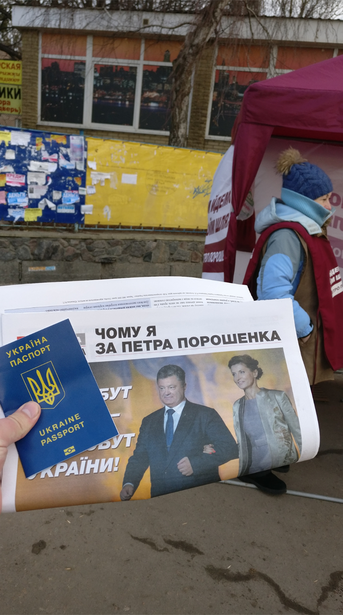 Регіональні передвиборчі штаби Порошенка поширювали друковану агітаційну продукцію (до прикладу, газети) через мережу агітаторів. Перед другим туром змінився зміст політичної реклами, з'явилися нові гасла, активно використовувалася прихована агітації. Зокрема, білборди без вихідних даних із зображенням постаті, що нагадує Петра Порошенка, з написом «Кінець», які оформлені в стилістиці агітаційної продукції Петра Порошенка; різноманітні публікації та друковані матеріали з ознаками чорного піару проти Володимира Зеленського, які поширювалися на регіональному рівні.