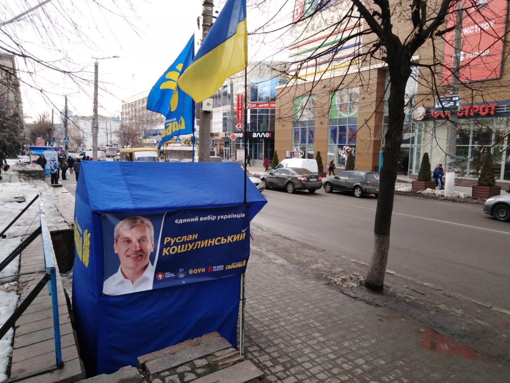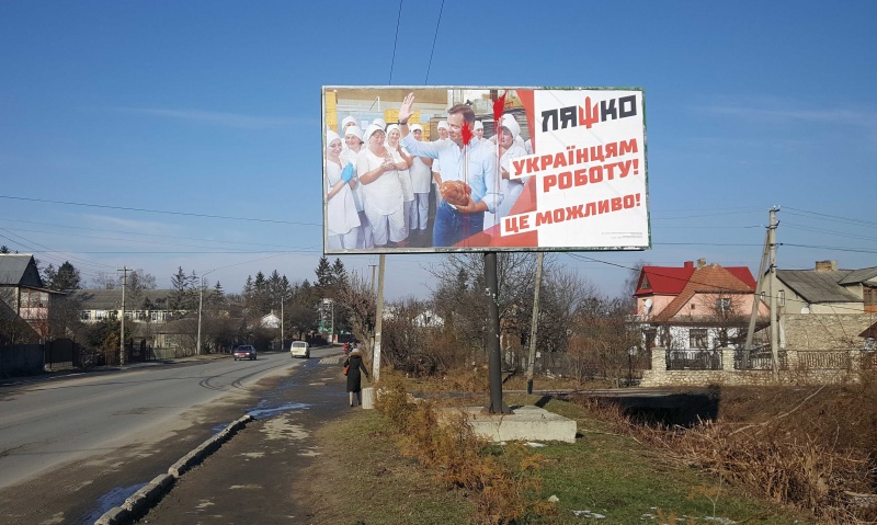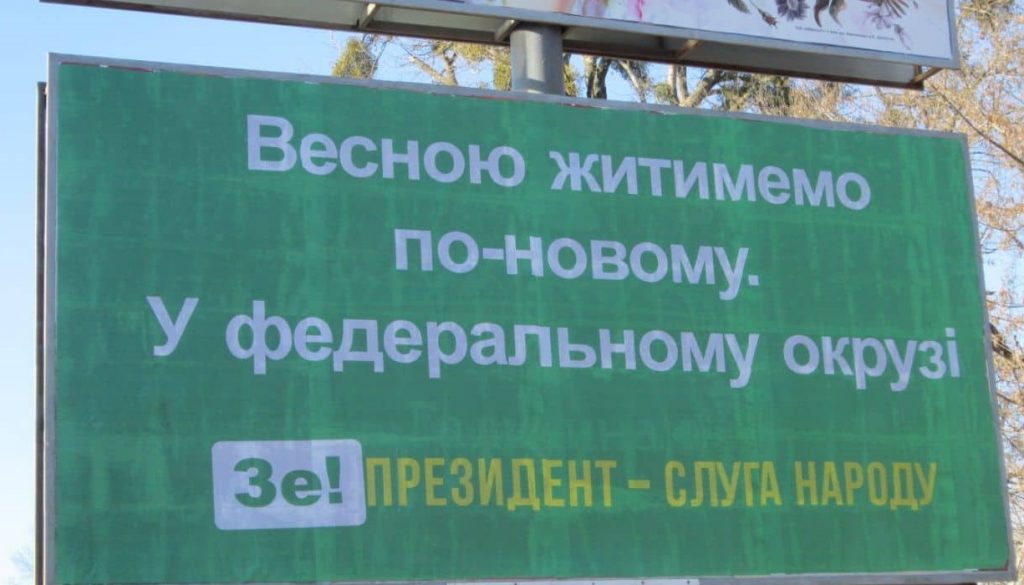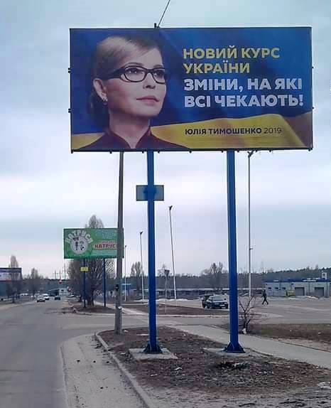 Але найбільше про кандидатів виборці дізнавалися все ж із білбордів, сітілайтів, банерів. Такий вид реклами використовували 12 кандидатів у президенти, а саме: Петро Порошенко, Юлія Тимошенко, Анатолій Гриценко, Олег Ляшко, Володимир Зеленський, Руслан Кошулинський, Юрій Бойко, Олександр Вілкул, Олександр Шевченко, Юрій Дерев’янко, Олександр Соловйов, Сергій Каплін. Контент агітаційної продукції регулярно оновлювався у Володимира Зеленського і Олександра Шевченка.