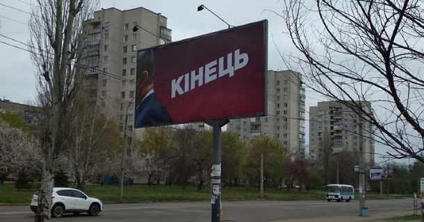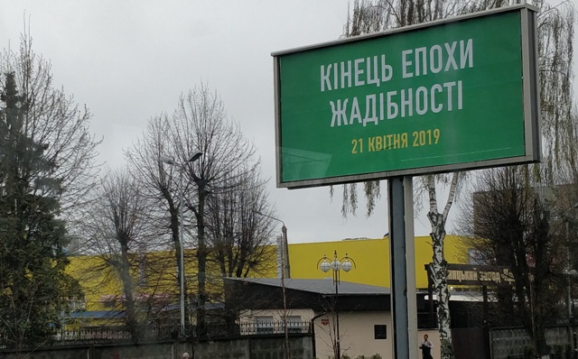 Команда Петра Порошенка в межах усієї України розмістила білборди із зображенням кандидата та президента Росії Володимира Путіна (а також без нього) з новим гаслом «21 квітня ― вирішальний вибір». Інший тип поширених кандидатом білбордів містив гасло «Головне ― не втратити країну». Також випускалися агітаційні матеріали із написом «Думай». З боку команди Володимира Зеленського протягом останнього місяця в різних областях України поширювалися сітілайти з новими гаслами: «Кінець епохи брехні», «Кінець епохи жадібності» та «Кінець епохи бідності».