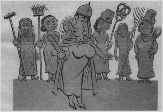 У ХХІ столітті не є дивиною участь жінок у політичних процесах, участь у виборчих перегонах, їх активна політична та громадська діяльність. Хоча ще не так давно участь жінок у політиці сприймалась приблизно, як на карикатурі «Дружина княгині Ольги», часопис «Комар», 1938 року.