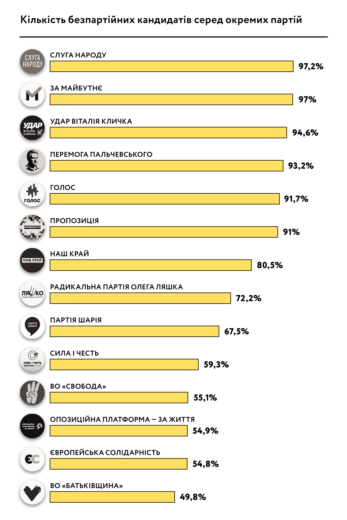 Серед усіх переможців виборів за пропорційною системою внутрішньопартійний бар’єр подолали 42% кандидатів. Натомість 39% кандидатів отримали депутатські мандати завдяки місцям у партійних списках, а не через персональну підтримку з боку виборців. Ще 19% отримали мандати автоматично як перші номери партійних списків.